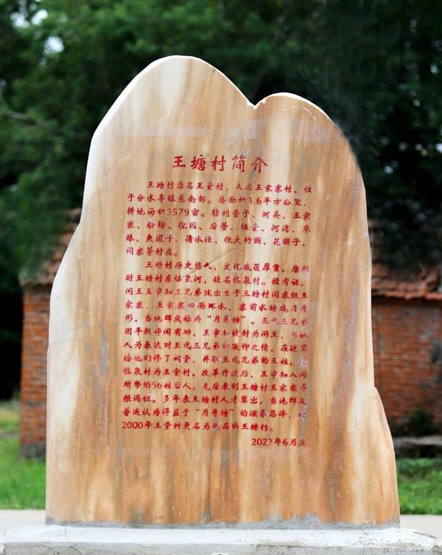 在分水亭镇王塘村,村口一块圆润如玉的大理石,显得沉稳大气,简约不失厚重。村标正面是大写的村名,左边有分水亭镇的Logo,右边刻着“闽王故里 灵秀分水”主题定位,背面是村情简介,介绍该村的位置、由来和文化,成为了良好的导视标识,也展示着乡村文化精神内涵,见证着的村庄的发展与振兴。
