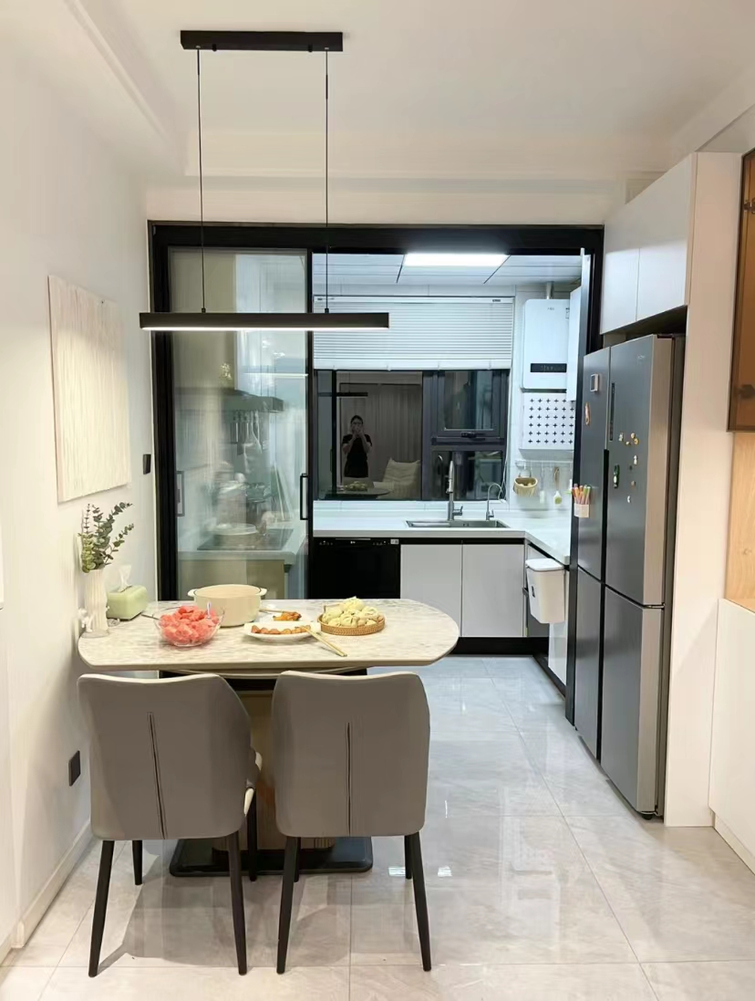 3. 厨房的推拉门也拆除掉,改造成半开放式,空间感更通透。