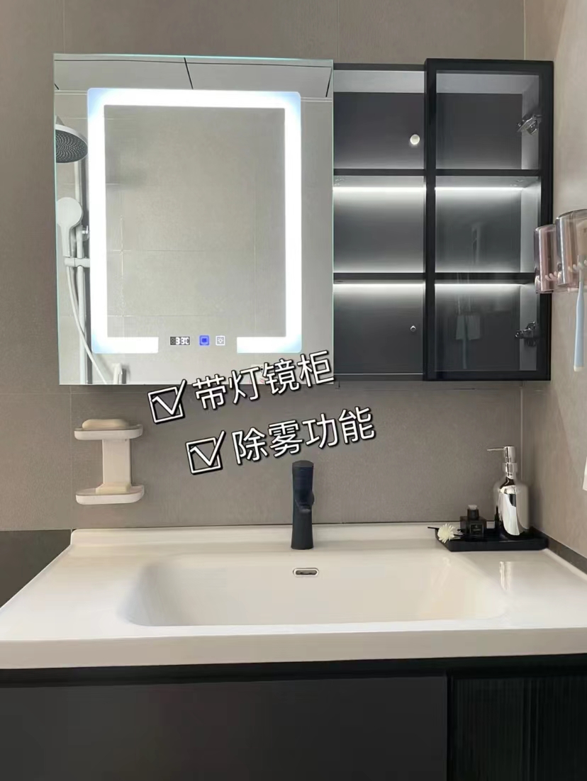 镜子要选带灯光照明的,化妆护肤会方便很多。镜子记得选能除雾的,这样洗澡的时候也能照镜子。
