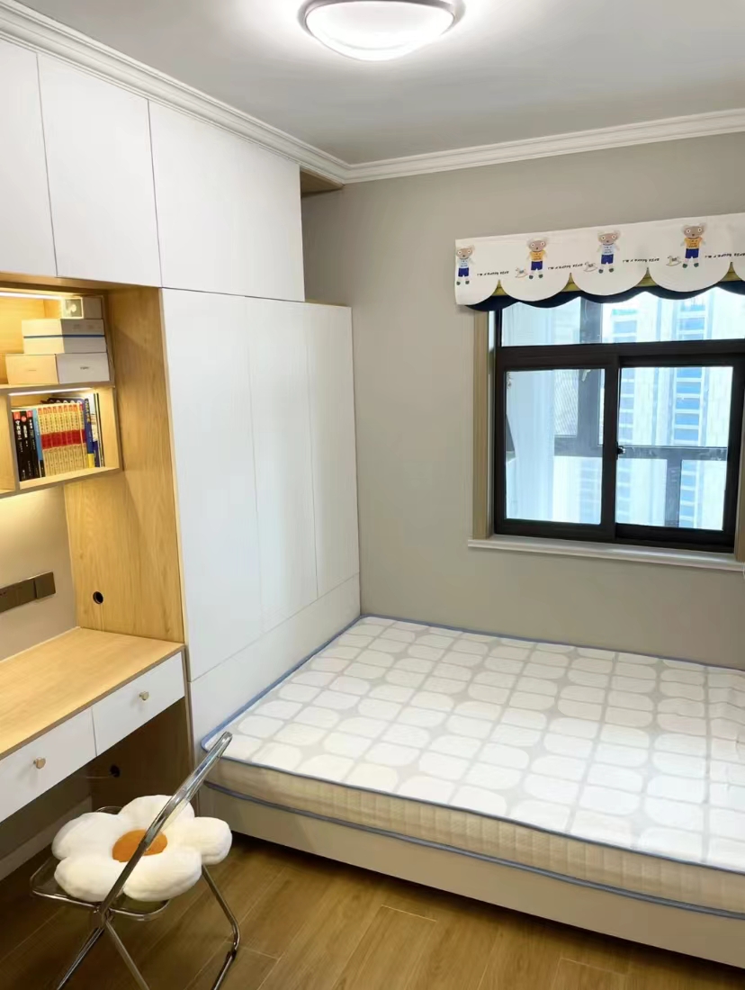 不同于以往的榻榻米房,这个房间没有做榻榻米,将榻榻米的位置留出来,摆放一张1.5*2m,高度25cm的光床架后,铺上合适尺寸的床垫,一切刚刚好。