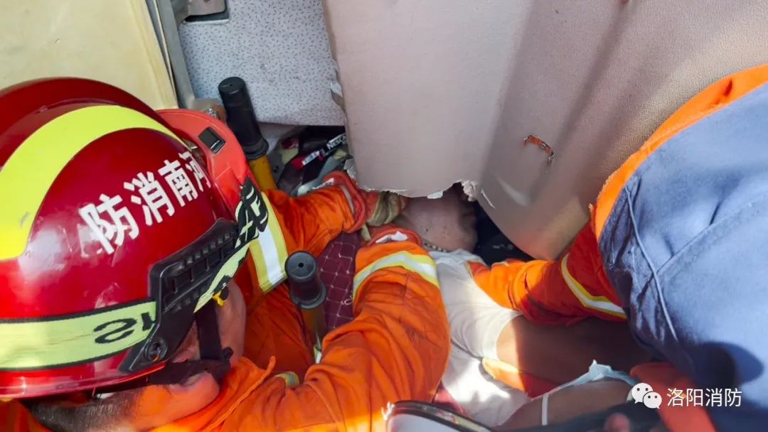 经过23分钟的紧张救援,消防救援人员将被困人员成功救出并移交给现场医护人员。