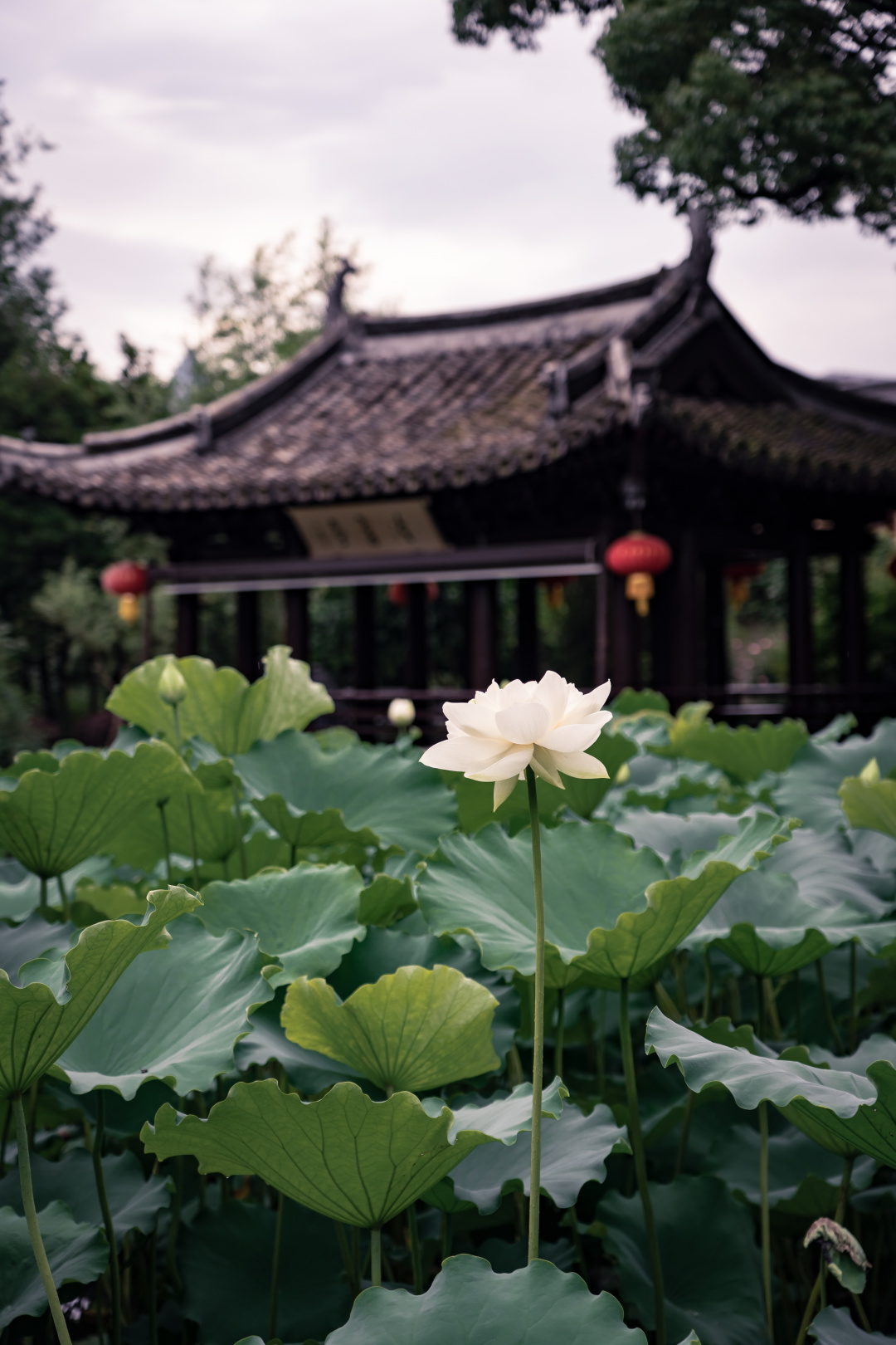 白露滴闻清响,旧荷犹带新霜。离“白露”尚有一月之隔,然而清晨的微暗处已有露水淅沥,秋日在不动声色间留下痕迹,一点点透来独具萧瑟的凉光。