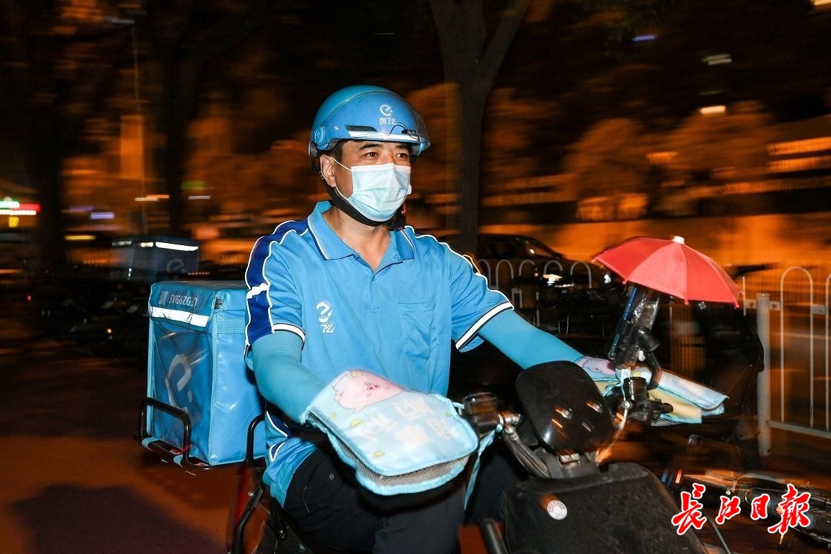 郭锋在送外卖途中。长江日报记者史伟 摄