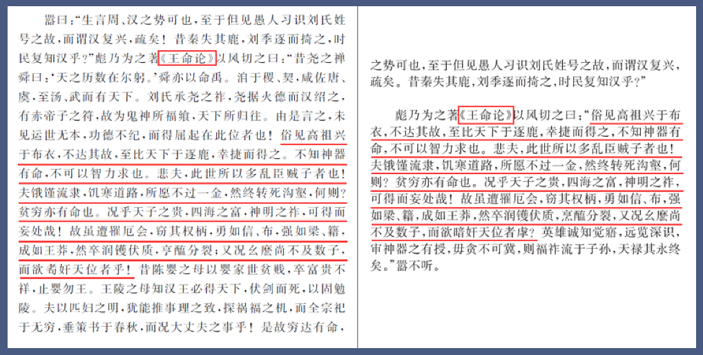 如汉光武帝建武五年载录班彪的《王命论》,原著490多字,而《纲目》则仅180多字,浓缩文章主要观点。