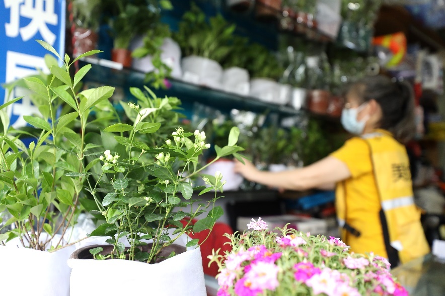 值得注意的是,今年盆栽花备受欢迎。美团优选数据显示,8月3日,平台鲜花、绿植订单量环比增长约300%,其中有七成用户选择了购买利用率更高、搬运更灵活的盆栽花。7月份,买菜顺便购买鲜花绿植的订单约70万单,展现出独特的“烟火气浪漫”。