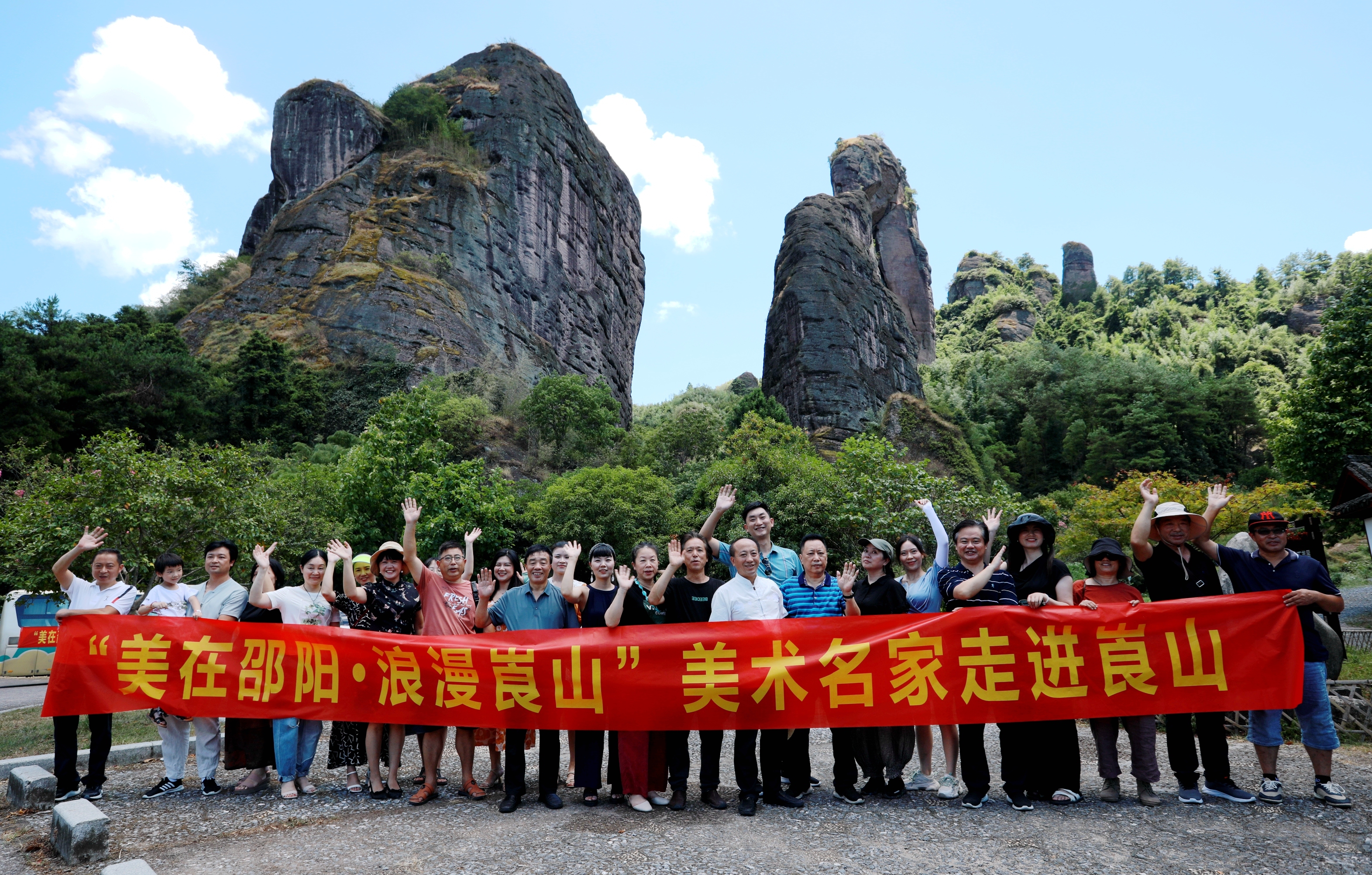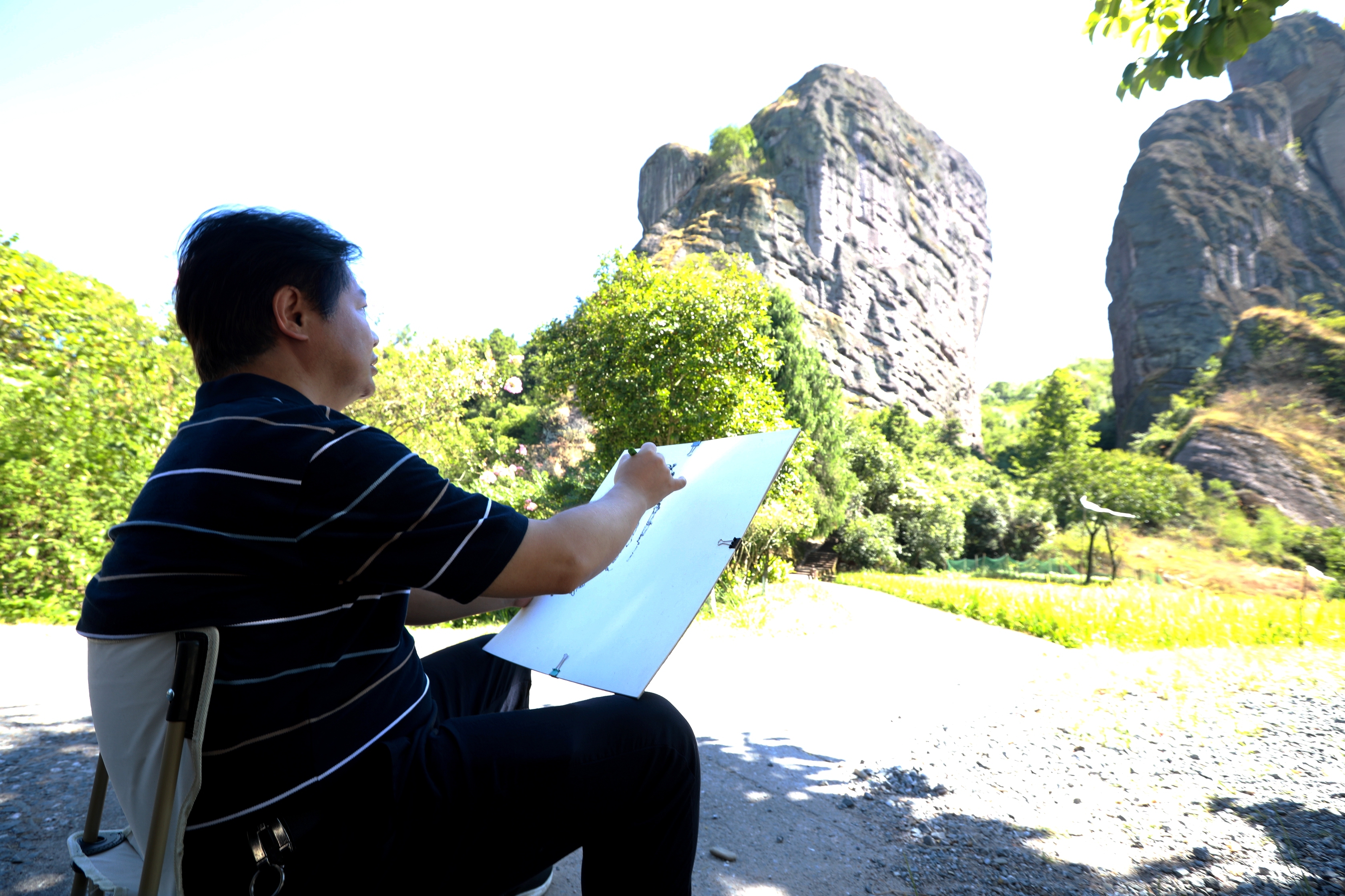 本报讯(文/杨坚 鄢跃斌 李亦昙 摄影/颜克明)8月7日上午,“美在邵阳.浪漫崀山”美术名家走进崀山采风写生活动在湖南省新宁县舜皇里文旅产业园启动。当天下午,来自全国各地的20多位美术名家深入世界自然遗产地、国家级5A景区崀山开始采风写生。“我多次来过崀山,每一次都有不同的感受,其实崀山本身就是一幅天然丹霞地貌的绚丽画卷,她能激发我创作的灵感。”中国美术家协会会员、湖南省花鸟画家协会常务副主席、秘书长,湖南省工笔画学会副会长,长沙市美术家协会副主席肖剑如是说。