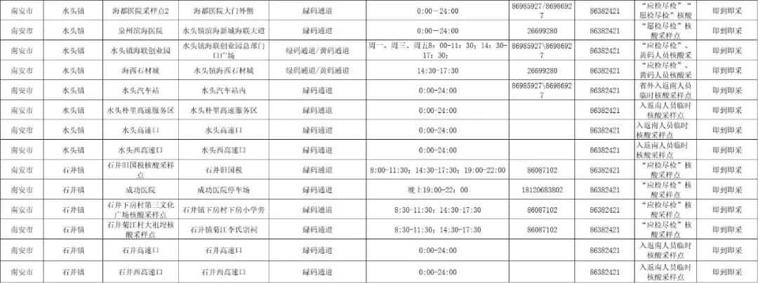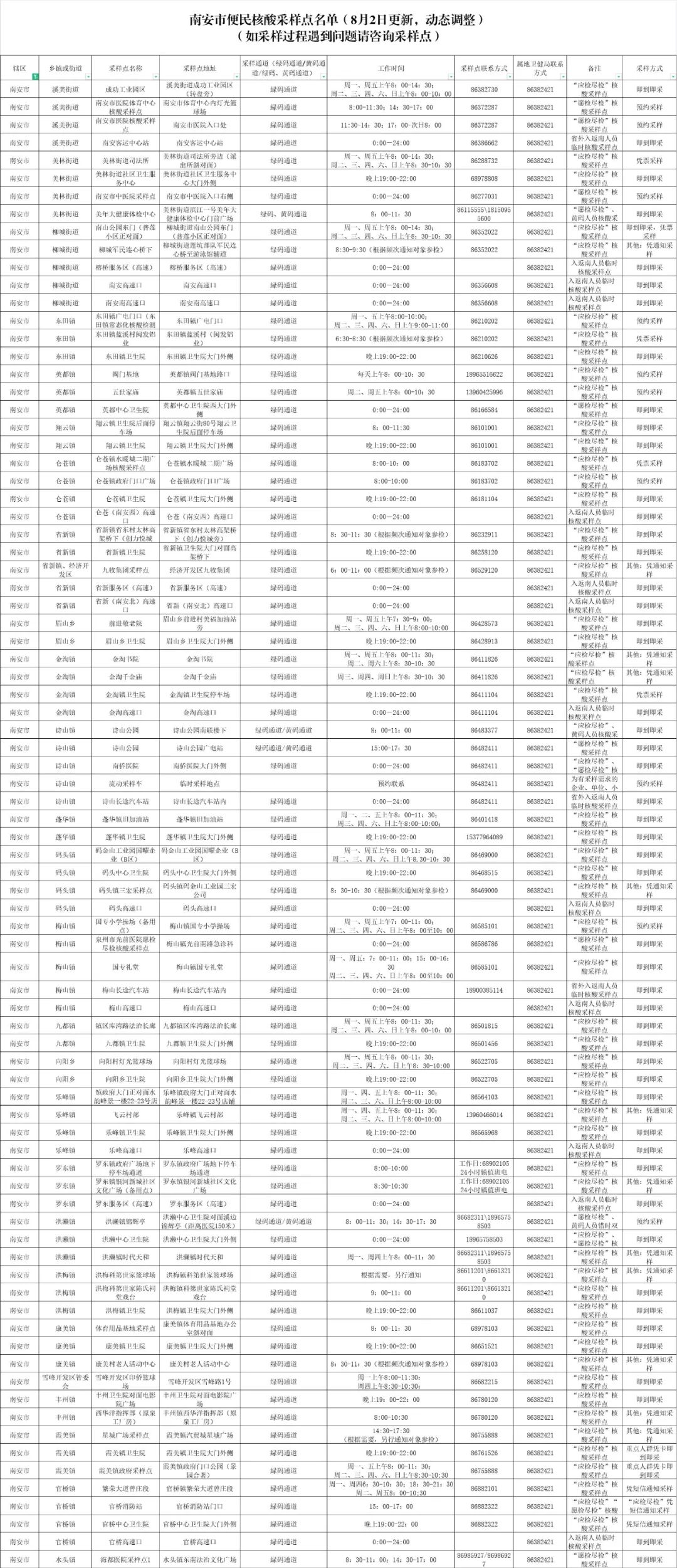南安市便民核酸采样点名单(8月2日更新,动态调整)