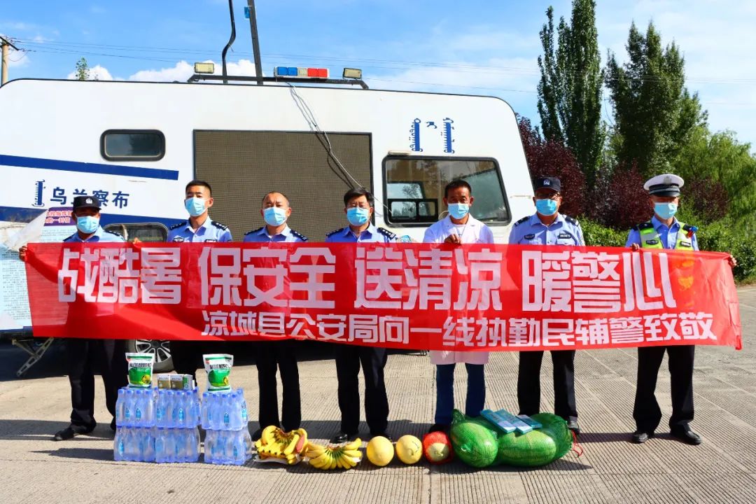 乌兰察布市公安机关为确保民警辅警以健康的体魄、昂扬的斗志坚决打赢夏季治安打击整治“百日行动”和党的二十大安保维稳攻坚仗,各地精心组织开展了“夏送清凉”慰问活动,深入一线执勤卡口,为奋战在高温酷暑一线的民警辅警送去夏日“清凉”和组织的关怀,激励广大民警辅警继续发扬吃苦耐劳的优良作风,主动担当,履职尽责,以更加饱满的精神和旺盛的斗志全身心投入到夏季治安打击整治“百日行动”中,全力维护辖区社会治安大局持续稳定。