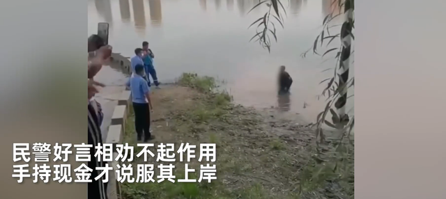 民警好言相劝不起作用,手持现金才说服其上岸,涉事男子看到民警手中真拿了300块钱,于是向岸边移动,最终该男子自己成功上岸。对于该男子的举动,围观直呼“这是讹人”。