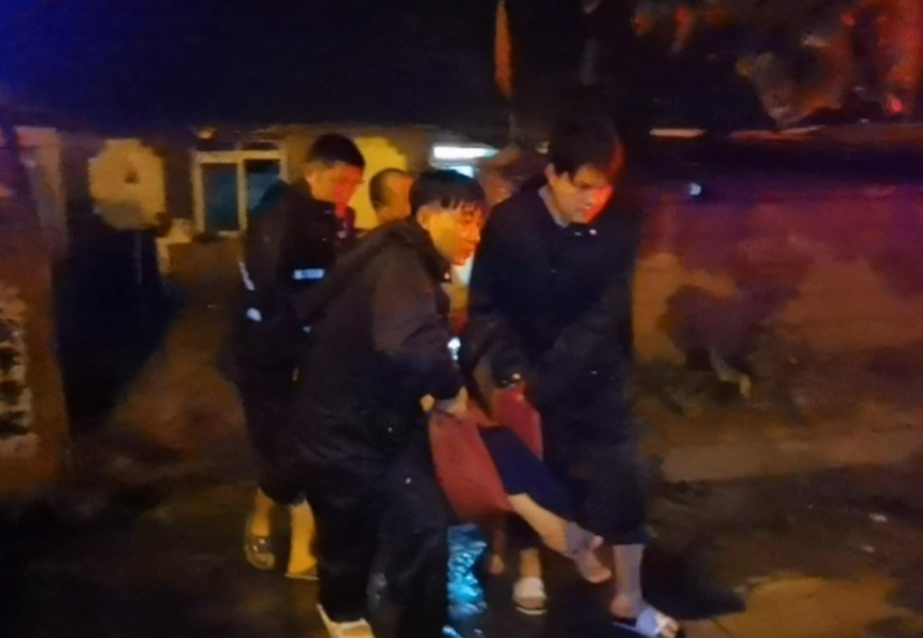 接警后,副所长初彬瑜、值班民警刘昭伯、辅警王靖天、崔志彬立即冒雨驱车赶到现场。被困人员是一名70多岁的瘫痪老人,由于家处低洼位置,大量雨水涌入屋内,水深处已能没过膝盖。