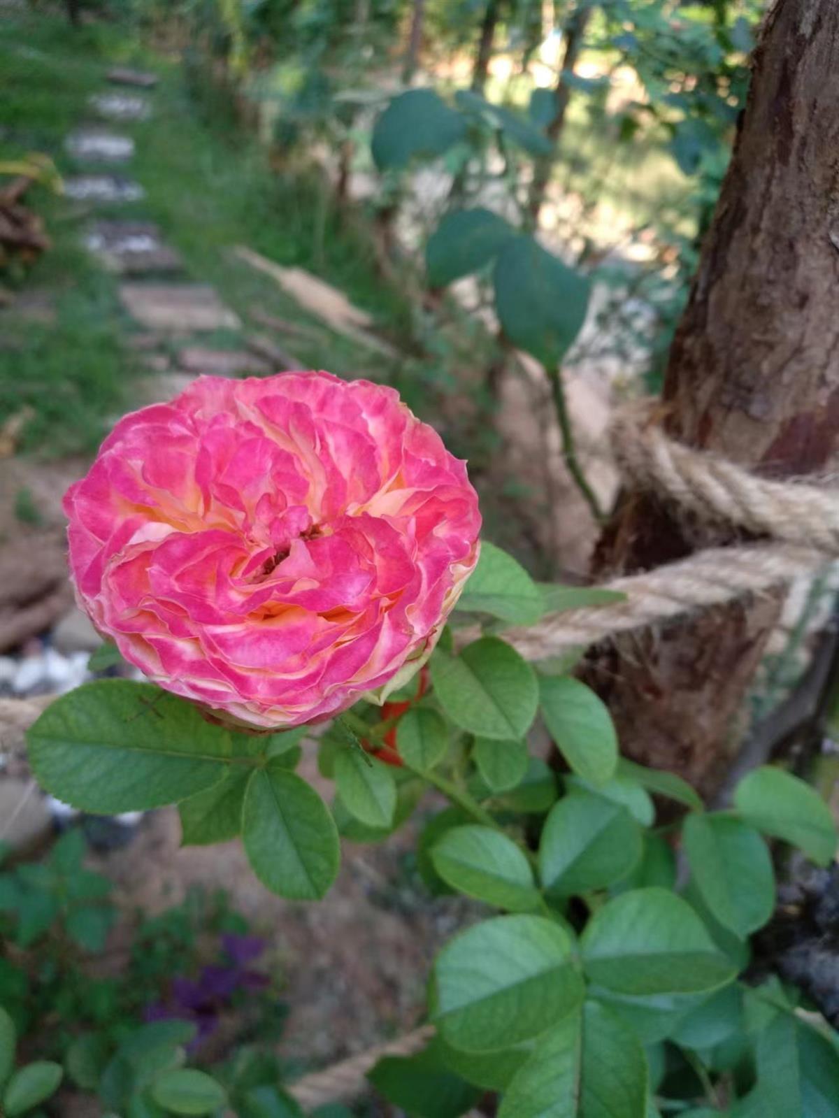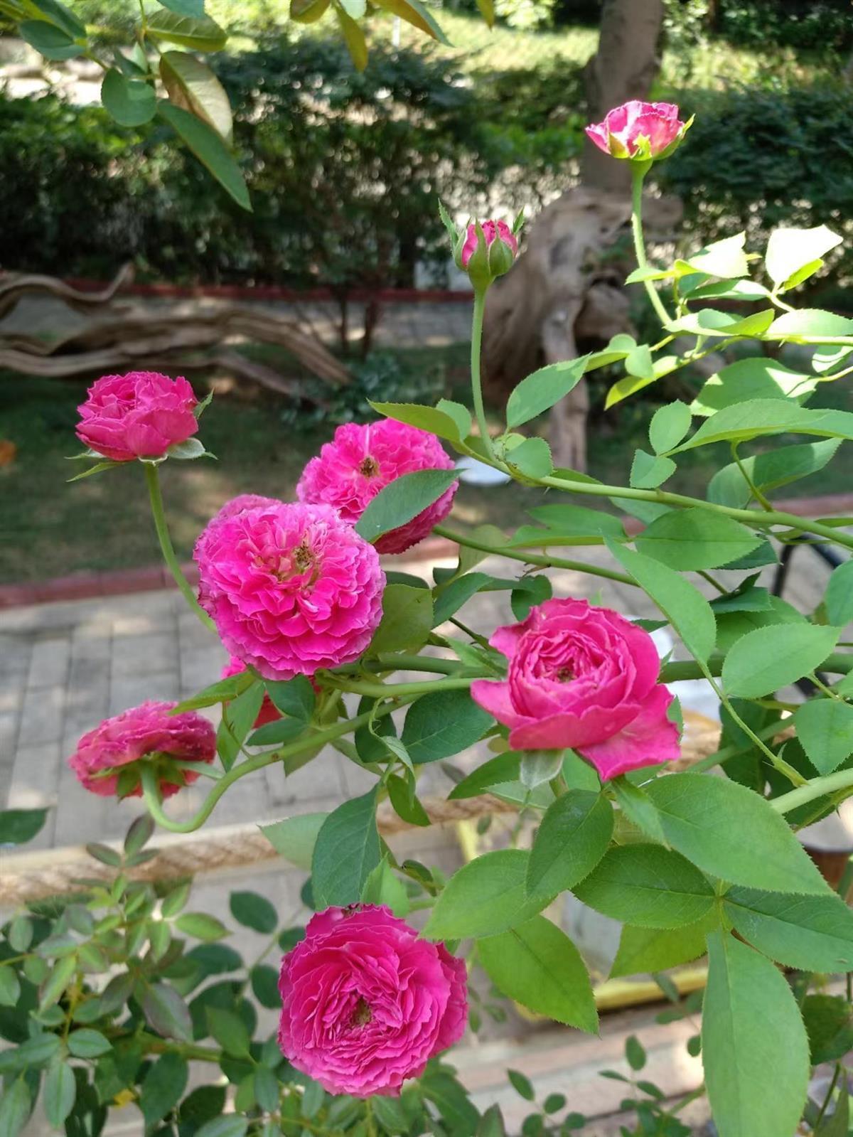 种植玫瑰花带的古女士介绍,小区5栋与周边有一定的坡度,每到雨天时,原来5栋的门前屋后的泥巴水流至步道上,总会让步道上积满泥巴,再加上小区名叫玫瑰湾却看不到玫瑰,于是她才萌生了在门前屋后种植玫瑰的想法。今年4月,在征得小区物业同意的情况下,她自费购买了数百株玫瑰,栽种在5栋的门前屋后,同时还买了上百根杉木,用锯子锯成一节节的,有的用做装饰玫瑰苗圃、兼具挡泥水的围栏,有的做成了玫瑰的攀爬架……没想到几个月后,玫瑰在众人的呵护下,长势喜人且花期不断,现在都成了小区的网红打卡点了。