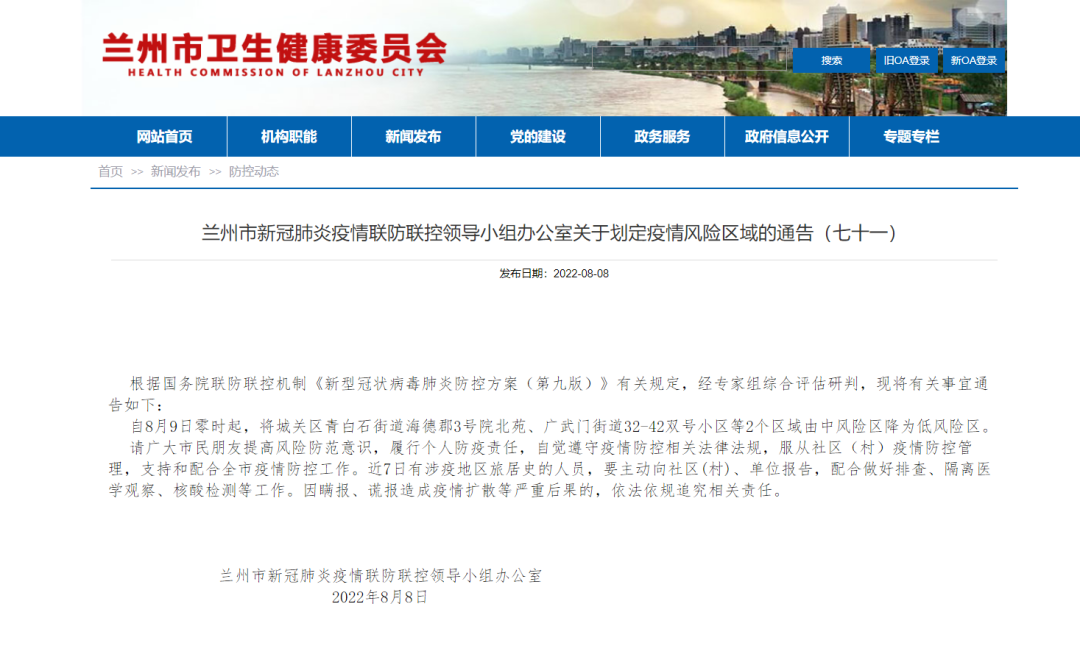 更新!甘肃省中高风险区汇总(截至8月8日20时)