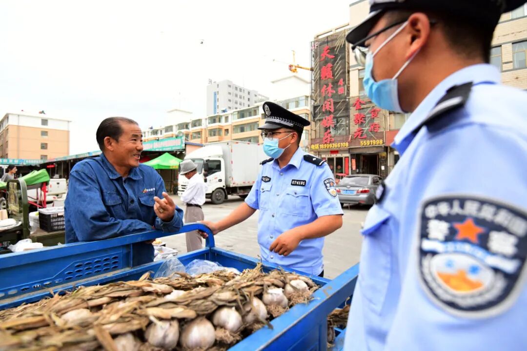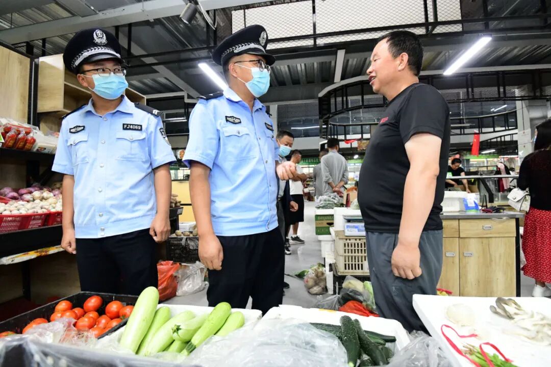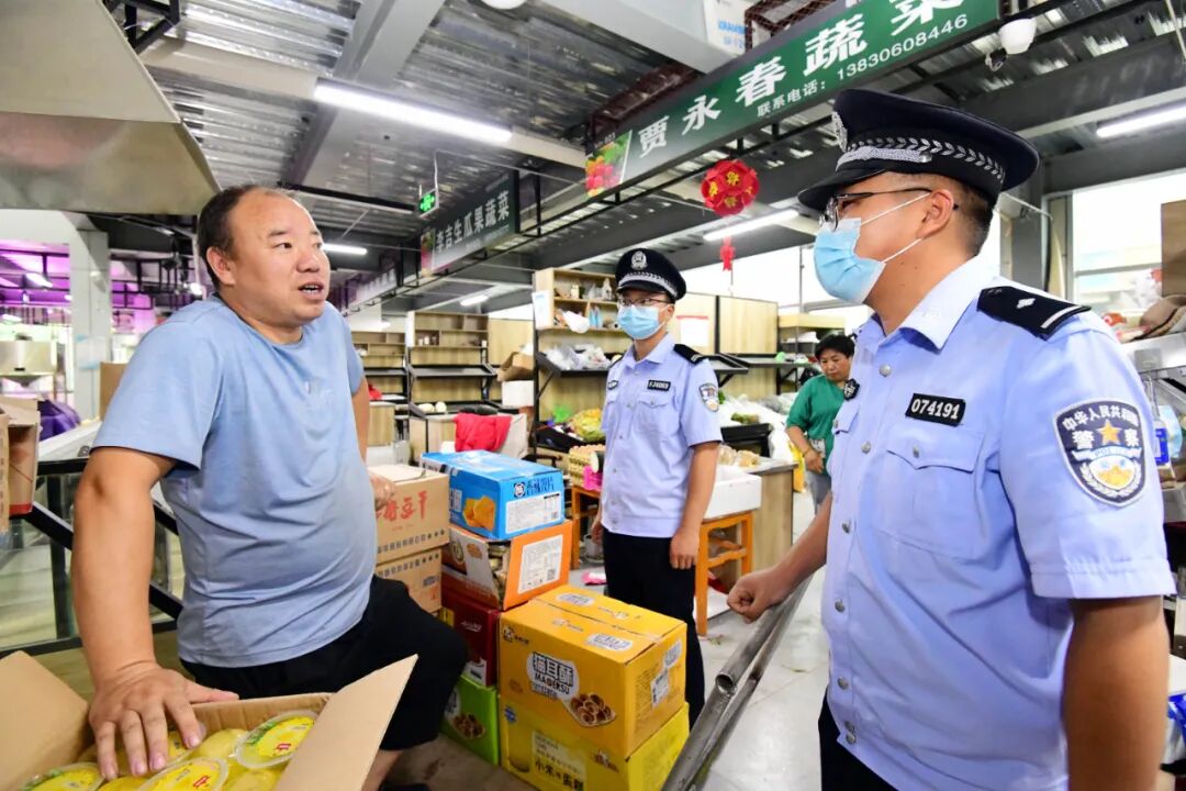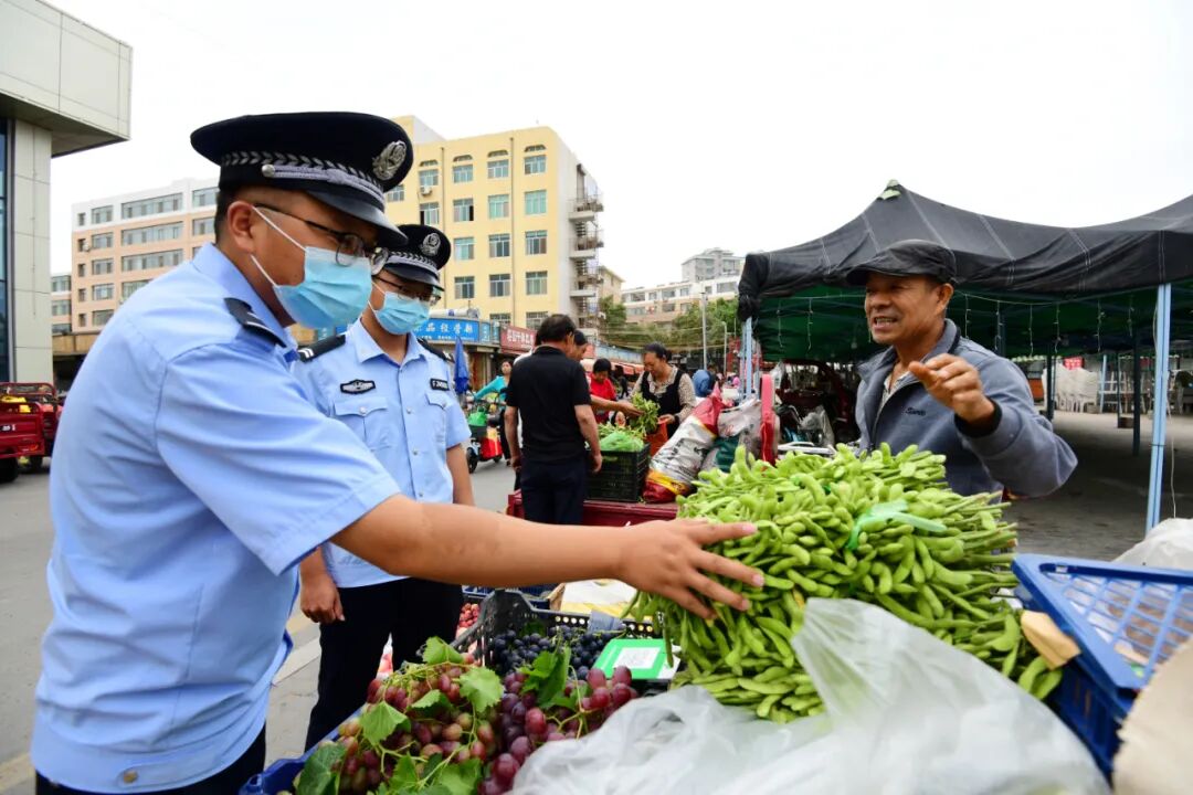为推进夏季治安打击整治“百日行动”纵深开展,连日来,临泽县公安局各派出所组织警力加大对辖区菜市场、夜市和人流密集场所的治安巡查,全面摸排矛盾纠纷苗头和不稳定因素,防范清除安全风险隐患,震慑打击各类违法犯罪活动,织密社会面巡逻防控网,确保全县社会治安大局持续稳定。 图为8月8日,临泽县公安局开发区派出所民警辅警在菜市场摊贩前了解治安状况。