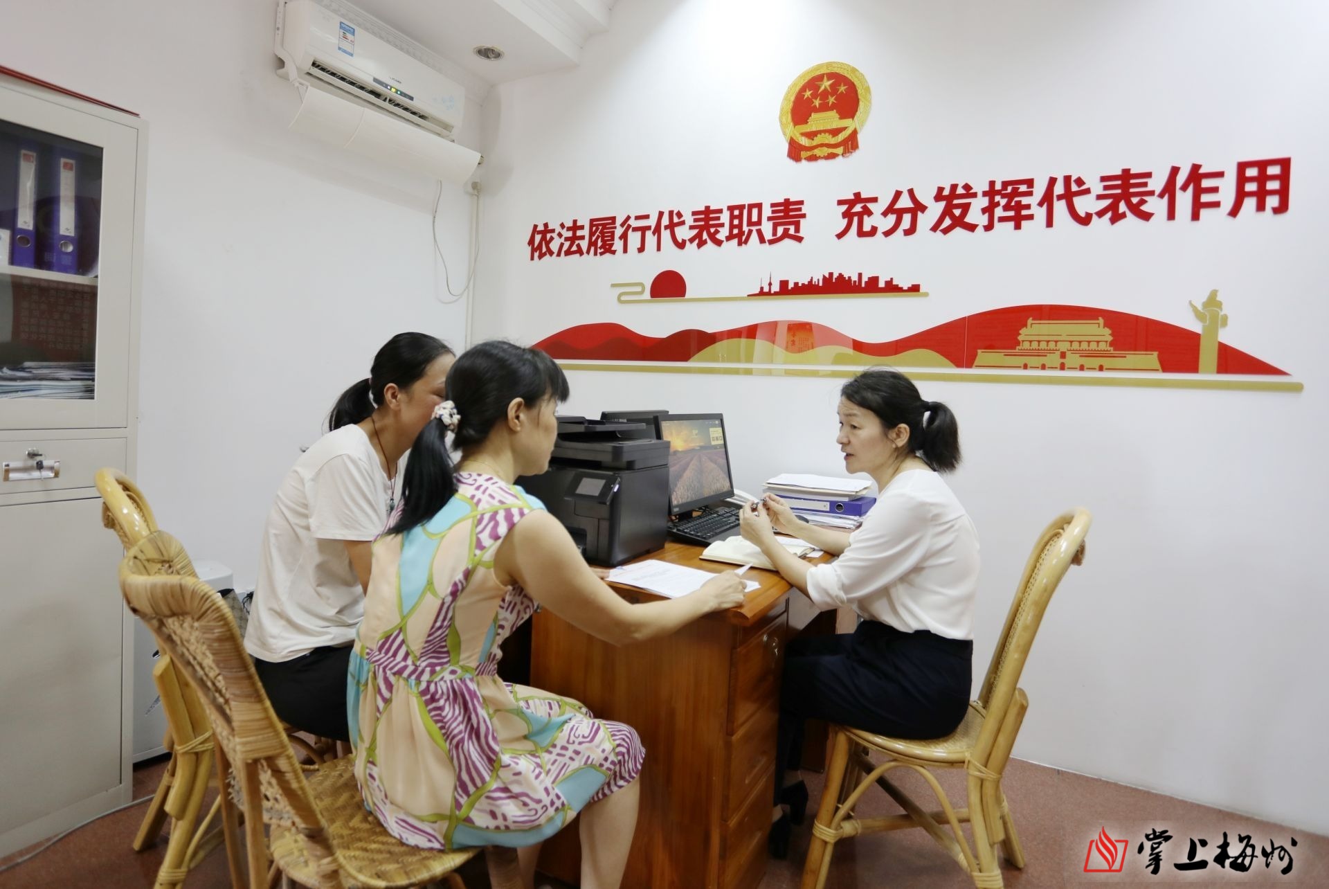 ▲梅县区人大代表温清华在新城办人大代表联络站接待群众。(吴丽伶 摄)