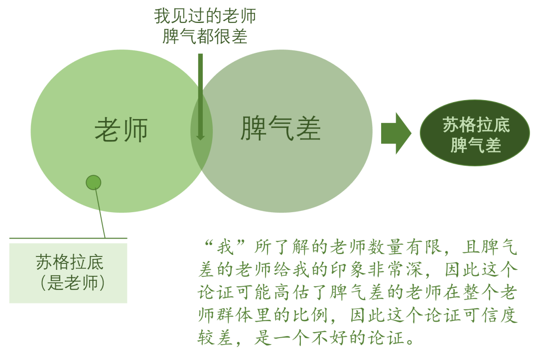 错论证1. 以偏概全,仓促概括:过小或带有偏见的取样来得出结论。俺们隔壁村老王的邻居就是吃这个药怀的男孩。