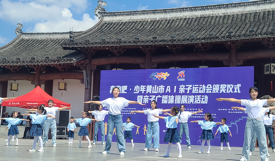 8月8日,第十四个“全民健身日”。为弘扬和传播徽州文化,推广全民健身,我市在歙县徽州古城举办“奔跑吧·少年”黄山市AI亲子运动会颁奖仪式暨亲子广播体操展演活动。