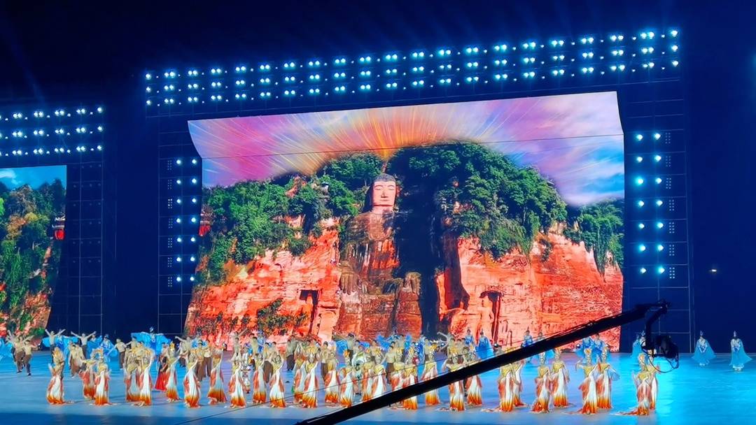 其中文体展演部分以一个“乐”字,串联起《花开乐土》《智者乐水》《仁者乐山》《同心乐梦》四个篇章,通过裸眼3D、无人机、全息投影等技术,将灵秀峨眉、海棠香国、铜河号子、峨眉武术、乐山大佛等乐山独有的自然人文符号贯穿其中,展现出满满的乐山特色。