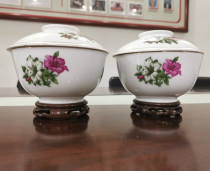左:清远瓷厂“中国清远”款花卉纹汤盅1套2件。