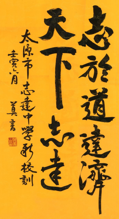 此次与“顾问天团”同时公布的还有学校新的校徽和校训。校徽以“国家栋梁”源启,以“鸿鹄之志”立道,同时以墨绿色搭配国风之美。更令人眼前一亮的是,今年6月,中国当代著名作家、诺贝尔文学奖获得者莫言专门为太原市志达中学题写了校训。