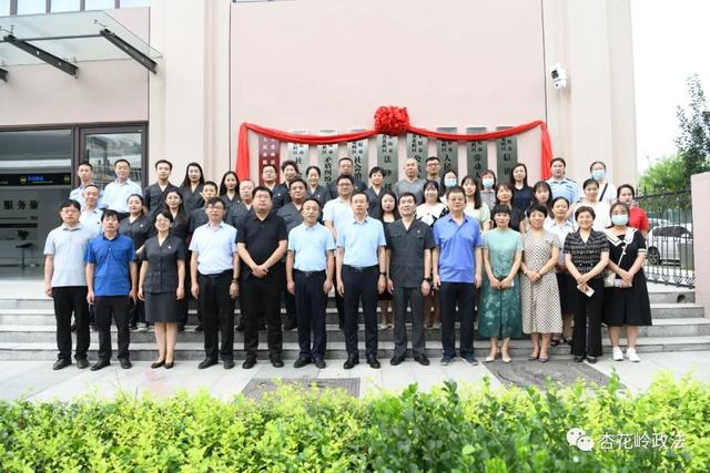 8月8日,杏花岭区举行社会治理中心揭牌仪式。区委常委、政法委书记杜志坚,区人民法院院长杨效熙出席揭牌仪式,区委政法委、司法局、人社局、信访局、精神康复医院等入驻单位相关负责同志参加仪式。