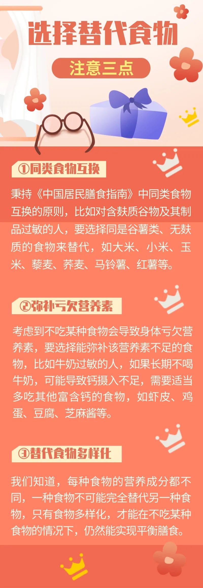 对于儿童和成人来说,不吃含致敏物质的食物,不能做到食物多样化,可能导致膳食平衡被打乱,所以也要采用替代食物。