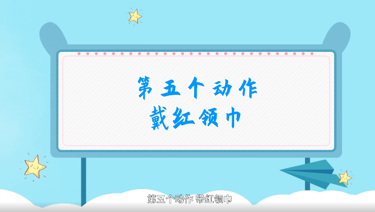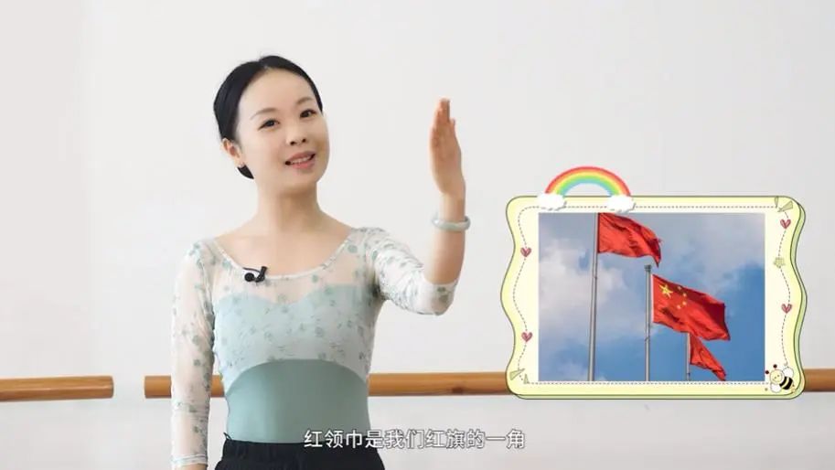 老师通过宣誓、戴红领巾等动作语汇,在孩子们脑海中构建入队仪式的场景,并告诉孩子们红领巾的意义。