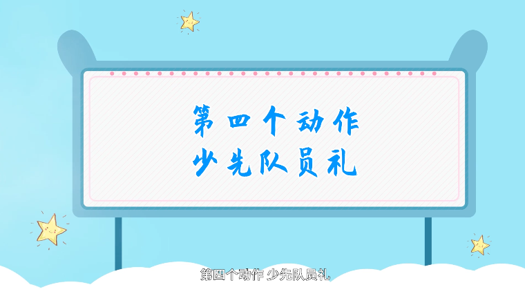 少先队员礼:正步位,左手五指并拢贴裤缝,右手五指并拢,屈肘高举过头,象征人民的利益高于一切。