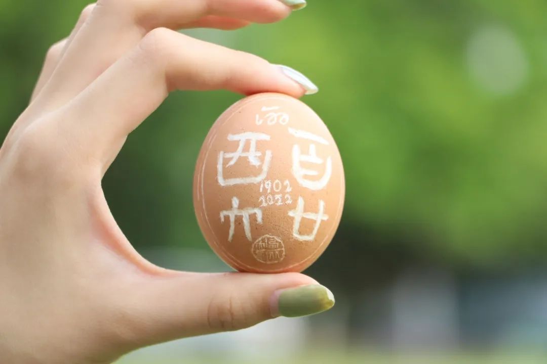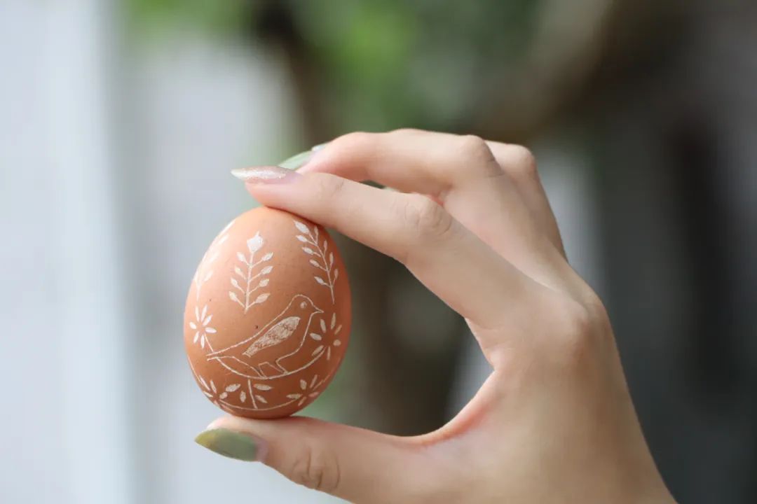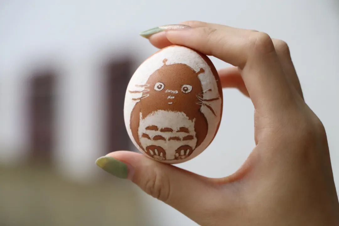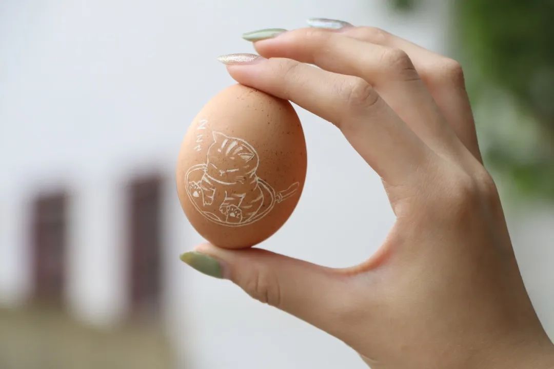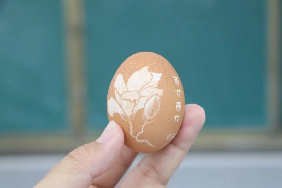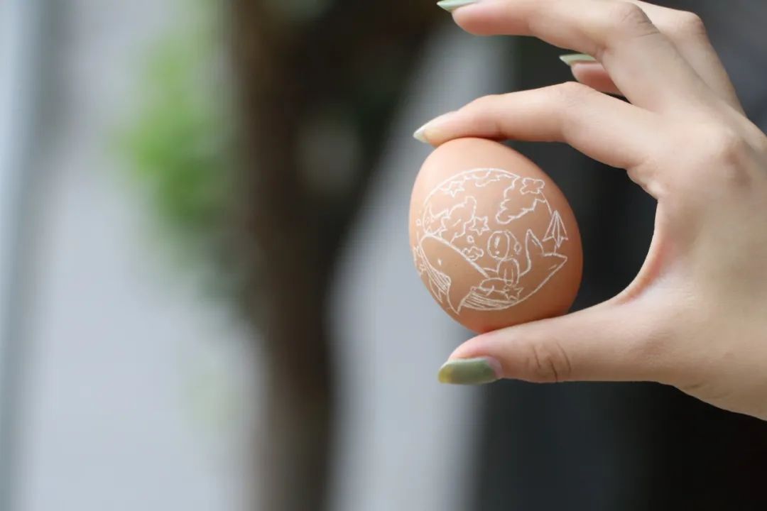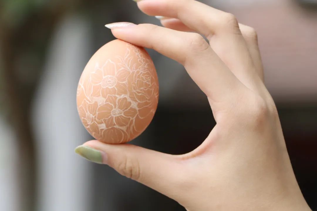 刻刀在鸡蛋薄脆的外壳上刻出花纹