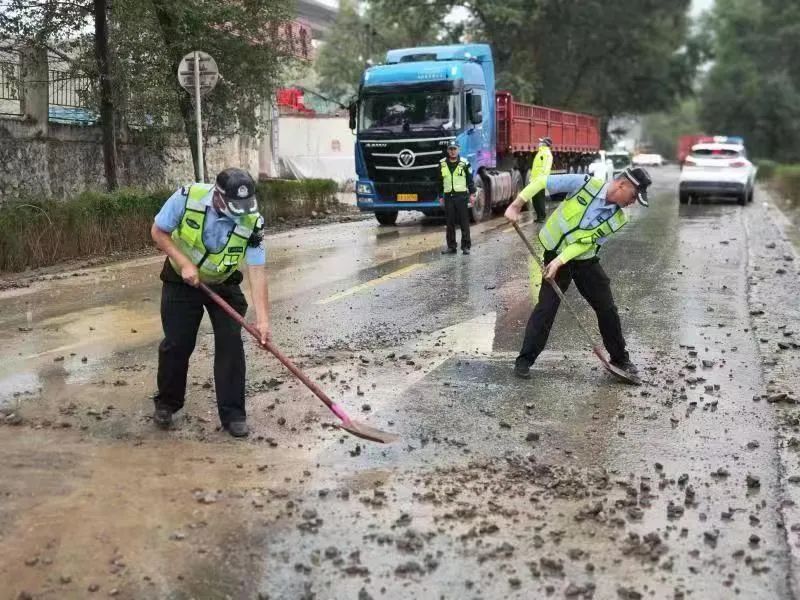 为全力应对暴雨天气引发的积水内涝等交通安全隐患问题,天祝县公安局交警大队全员上岗,在积水严重路段采取临时交通管制。巡逻民警巡查至鲁家沟口和大圈湾路段时,发现部分路段由于垃圾堵塞排水口导致积水上升,民辅警随即徒手清除垃圾,缓解了积水上涨,保障了道路正常通行。