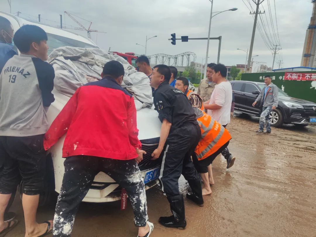 下午4时,国道312线县城路段及城区部分低洼路段被洪水淹没,有车辆被困水中。反恐特警特勤大队联合应急消防大队,对积水严重的路段进行管制、疏导、分流,救助、拖移被困车辆。通过全体救援人员的不懈努力,当日下午6时许,所有车辆成功脱险。