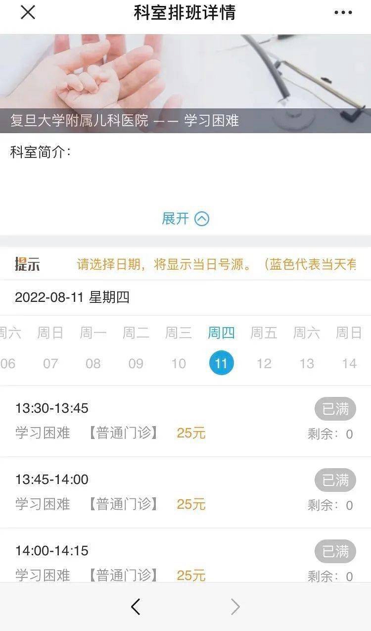 目前,“学习困难”门诊的预约很紧俏,能够网上预约的8月11日的号源均已告罄,可谓“一号难求”。