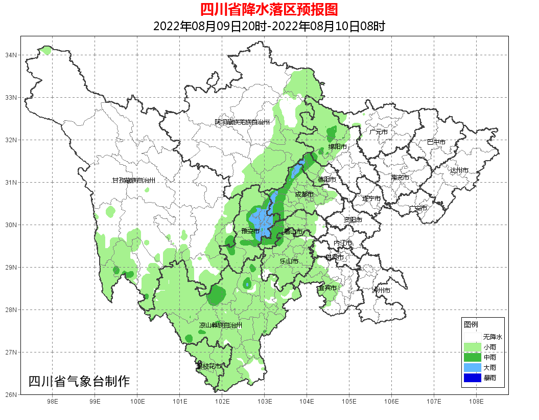 今天晚上:成都、雅安、眉山、乐山4市和德阳、绵阳、广元、宜宾4市西部多云间阴有分散阵雨或雷雨,局部地方有中到大雨,个别暴雨,盆地其余地方晴间多云;川西高原大部多云间晴,其中甘孜州西北部和南部、阿坝州东部多云间阴有分散阵雨或雷雨;攀西地区多云间阴有分散阵雨或雷雨,局部地方有中雨。