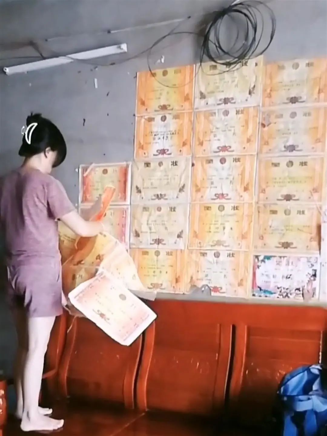 撕下奖状的是吕女士,她自己在8月2日拍摄的视频显示,这些奖状都是她儿子在学校考试中取得好成绩后获得的,奖状整齐地贴在家中墙上。吕女士将这些奖状一一撕下,然后摞在一起。