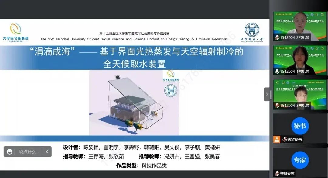 2022年8月2日至5日,“六百光年杯”第十五届全国大学生节能减排社会实践与科技竞赛决赛在津举行。本届大赛作为节能减排全民行动的重要组成部分,由“教育部高等学校能源动力类专业教学指导委员会”指导,由“全国大学生节能减排社会实践与科技竞赛委员会”主办,天津大学承办,六百光年智能科技公司协办。本届竞赛有来自全国600余所高校报名参赛,大赛自启动以来共计收到作品6218件,经专家评审共有10件作品被评为特等奖、138件作品被评为一等奖、227件作品被评为二等奖、1164件作品被评为三等奖。我校“涓滴成海”——基于界面光热蒸发与天空辐射制冷的全天候取水装置、尿水分离-重力自吸零能耗超节水小便池、“废酸淘金”—废旧干电池与厨余垃圾协同处理一体化装置、无级变“电”器-可控传动比的健身房机械能稳定回收储能装置获一等奖,另有变转动惯量液芯飞轮储能及其装置设计获二等奖,氢出于蓝-风浪耦合海水淡化电解制氢装置等7项作品获三等奖。我校再次荣获优秀组织奖,连续15年获此殊荣。