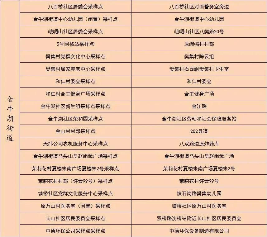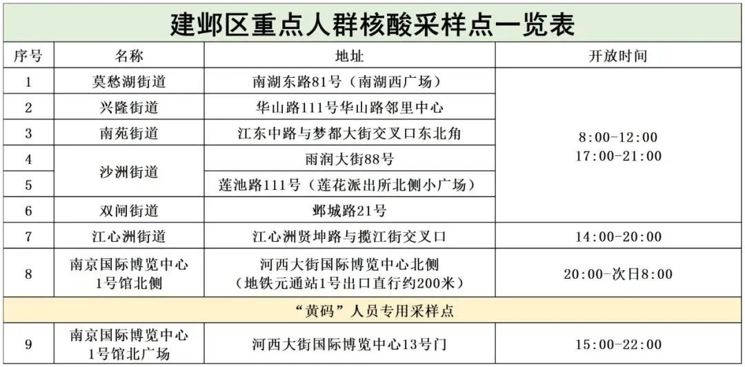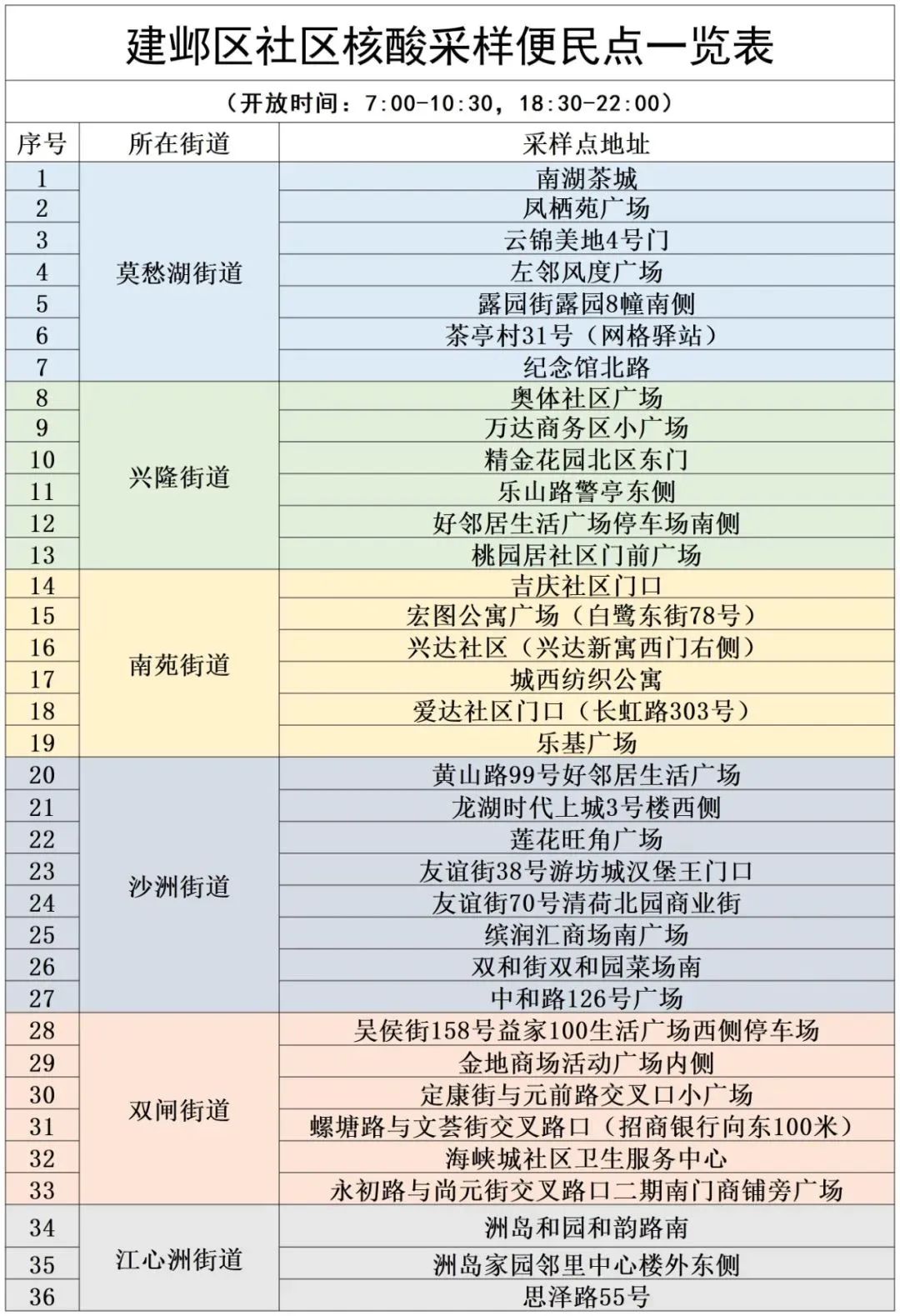 1.建邺区8月9日—13日社区核酸采样便民点一览表