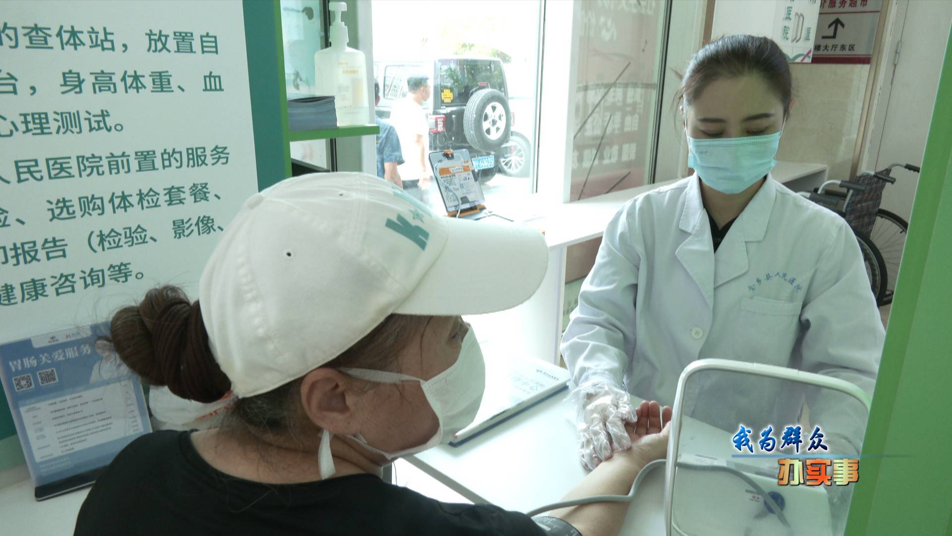 记者在采访时看到,“健康小屋”面积虽小,但配备了轮椅、担架、除颤仪、氧气袋、急救药品,是公共场所的急救点、智慧医疗的体验处、群众身边的查体站,前来办事的群众,即可享受免费测量血压、血氧、身高、体重、脂肪测量等自选服务。