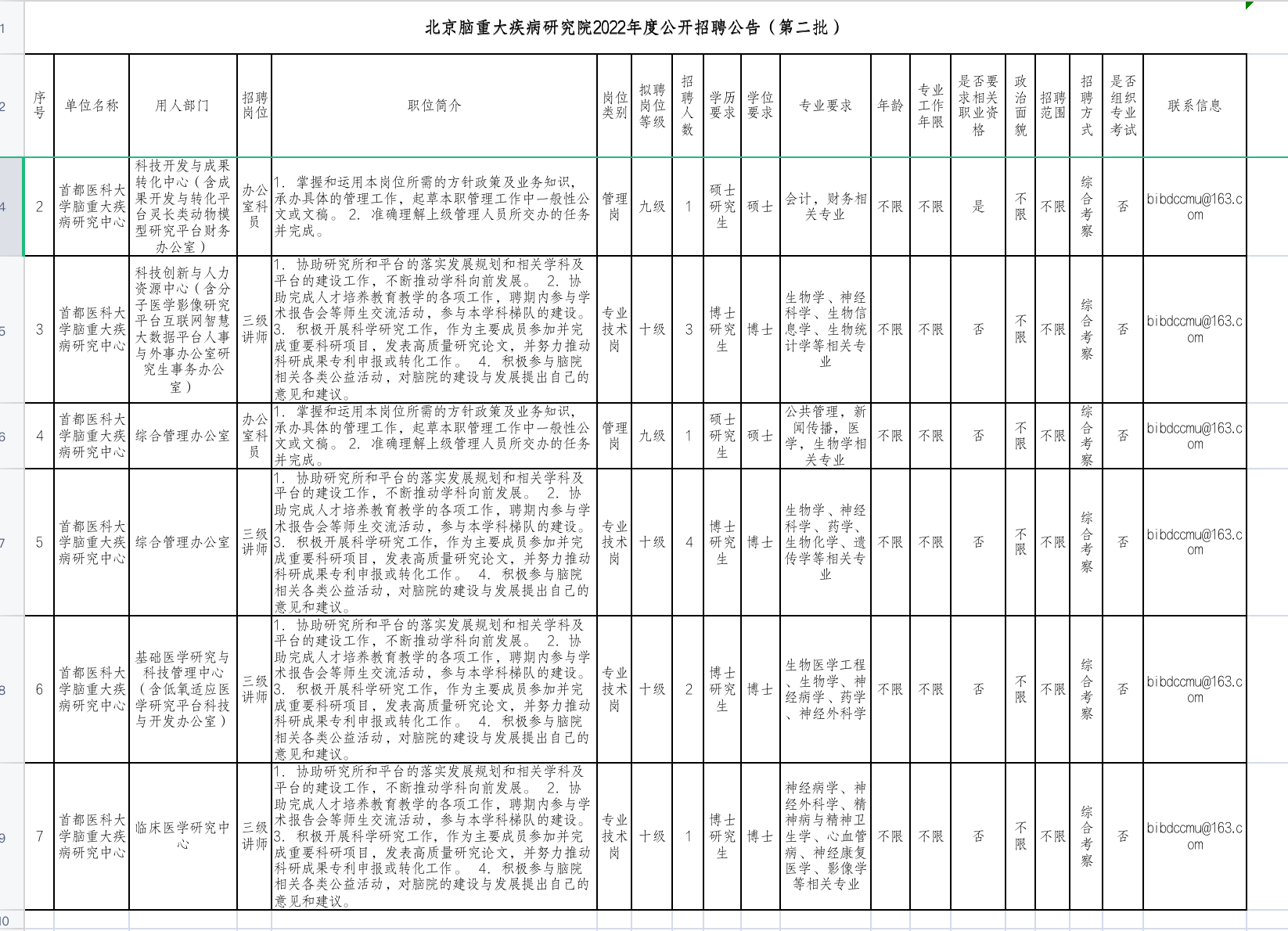 未来5年,脑院主要任务是聚焦脑健康和脑重大疾病防治,搭建基础与临床研究融合平台,营造协同创新和医工交叉环境,引进和培养基础、临床双栖领军人才,打造国际领先的脑重大疾病防治研究机构和学术交流基地,对接中国脑计划和北京脑科学与类脑研究中心,利用北京临床资源承接其创新成果,推动具有中国特色的脑计划从研究到应用全链条机制的建立,服务中国主动健康计划,改善和提高中国人口健康质量。为了这个建设目标,根据《北京市事业单位公开招聘工作人员实施办法》(京人社专技发[2010]102号)及《关于进一步规范事业单位公开招聘有关问题的通知》(京人社专技发[2012]247号)精神,现面向全社会公开招聘各类人才。详见北京市人力资源和社会保障局事业单位招聘频道:http://rsj.beijing.gov.cn/xxgk/gkzp/202208/t20220804_2786204.html