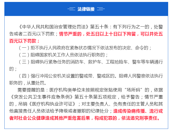 对不听劝阻,拒不使用“场所码”的行为,轻则公安机关将予以警告、罚款,重则予以行政拘留;构成犯罪的,将依法追究刑事责任。