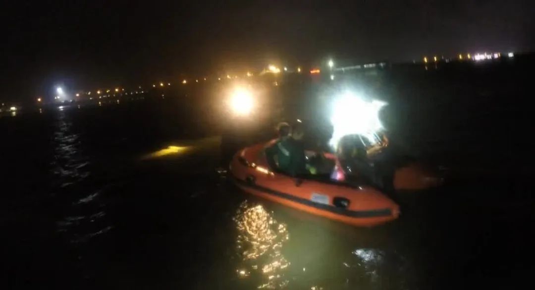 由于夜晚海中光线不足,消防救援人员驾驶橡皮艇无法很好的确定被困群众的位置,消防救援人员便拨通被困群众的手机,要求他们打开照明灯具,以便快速找到他们的被困位置。随后,消防救援人员便在距离被困群众约2公里的位置发现了一丝晃动的灯光。