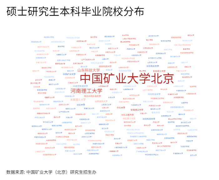 硕士研究生本科毕业院校分布如图。硕士录取双一流优秀生源850人。