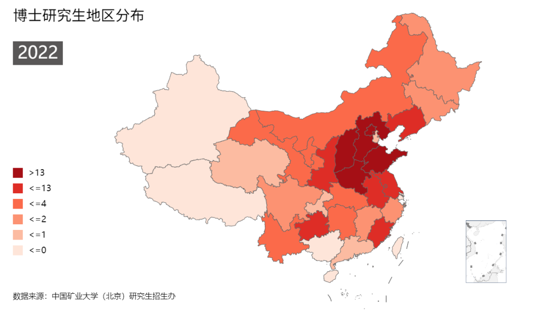 博士研究生地区分布情况如图,博士研究生依然集中在北京 、河北、山东、河南、山西。