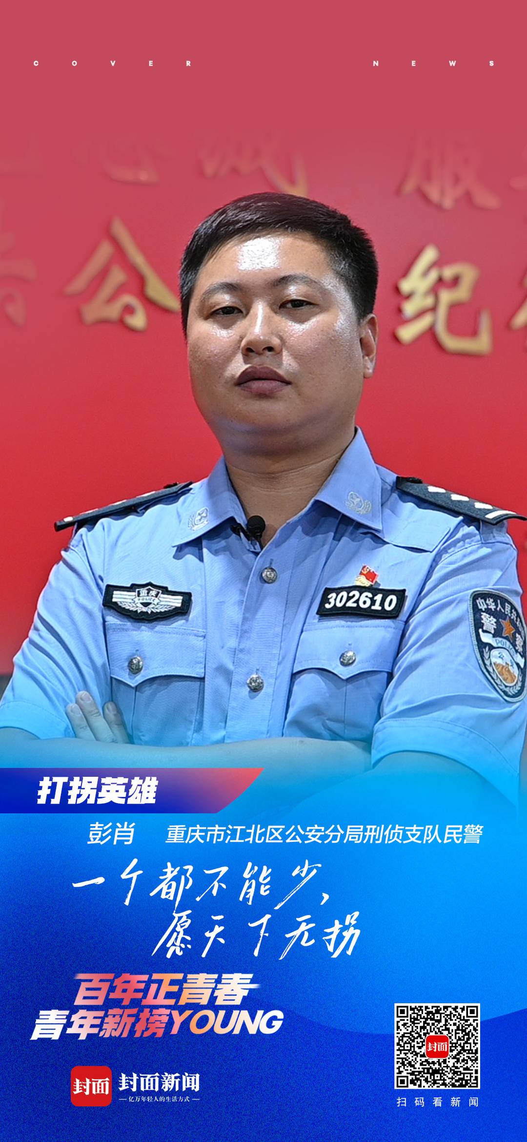 今年35岁的彭肖,是重庆市公安局江北区分局刑侦支队追逃打拐大队的一名民警。成为打拐民警6年来,彭肖总是冲锋在追逃打拐一线,2000多个日夜奔忙,换来600多个家庭的团聚,“一个都不能少”就是彭肖的座右铭。