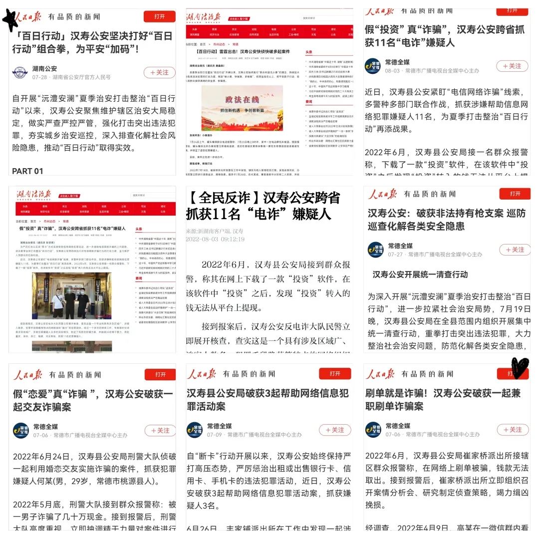 汉寿公安统筹策划,及时在公安新媒体开设“百日行动”专栏,全力营造汉寿公安广大民警辅警全力以赴防风险、保安全、护稳定、促发展的浓厚氛围。人民日报、新湖南、湖南法制报、常德公安、常德融媒、汉寿融媒等接连刊登《再传捷报!午夜砸车盗窃 民警24小时内抓获盗贼》、《雷霆出击!汉寿公安快侦快破多起案件》、《“假“投资” 真“诈骗”,汉寿公安跨省抓获11名“电诈”嫌疑人》等影响较大稿件,充分宣传了汉寿公安民辅警忠诚履职尽责、守护万家平安的新担当新形象。
