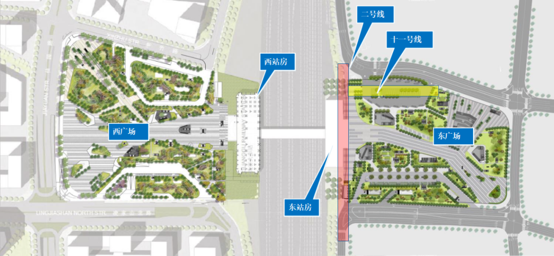 据设计方铁四院介绍,武汉东站规模约2.6万平方米,站场南北走向,分城际场和普速场,城际场4台6线;普速场1台6条,并与城际场共用一座中间站台。东西广场地下空间方案以武汉东站为圆心,一百公里范围内将涵盖整个武汉城市圈。