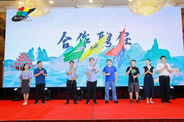 与此同时,为吸引更多江苏游客前往浙江并跟着唐诗游浙江,体验新天仙配黄金旅游线,主办方向8位旅游达人颁发聘书,邀请旅游达人为“新天仙配”黄金旅游线代言。为加强两地文旅交流合作,邀请更多江苏游客前往体验“新天仙配”黄金旅游线,“新天仙配”联合体面向江苏省旅行社推出一系列优惠政策,联合体代表向四家江苏旅行社代表授予“新天仙配”合作社旗帜。