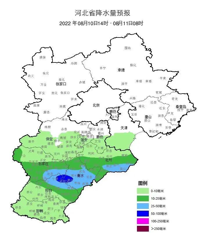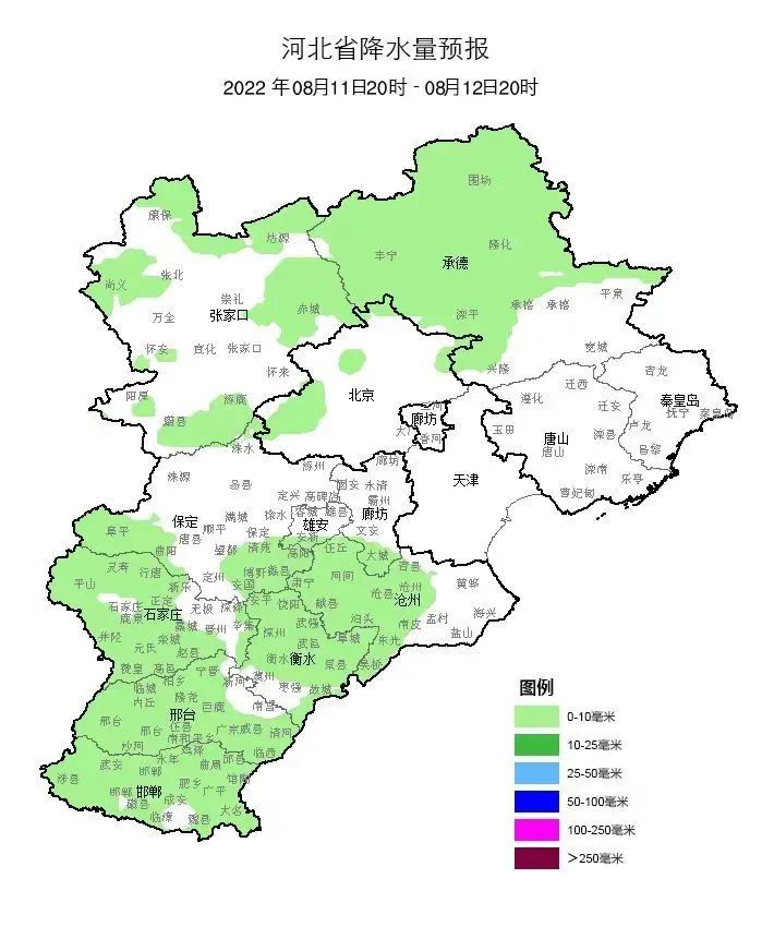 今天夜间到明天,张家口、承德西部和保定、廊坊以南地区阴有分散性阵雨或雷阵雨,其他地区多云间阴。