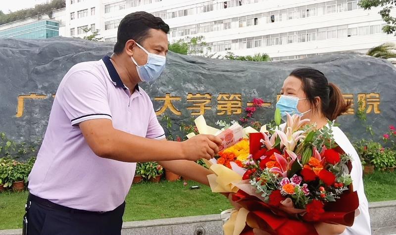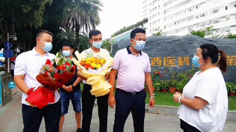 “昨天下午,通过‘水滴筹’平台得知代朵山的病情危重和医疗费缺乏的信息后,我们兄弟四个特别着急,今天一大早就从柳州市赶来看望代朵山,但因为疫情防控的原因不能去病房,已经向代朵山的妻子刘芬表达了我们的关切之情,希望代朵山身体早日恢复健康。”8月7日,艾尼瓦尔·吾买尔在广西医科大学第一附属医院前满怀关切地说。