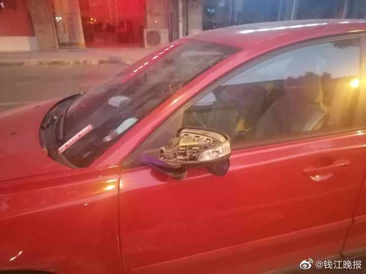 他们跟着代驾师傅来到现场,只见一辆红色小轿车的车身已经有不同程度的撞痕,连车胎都爆了一个。
