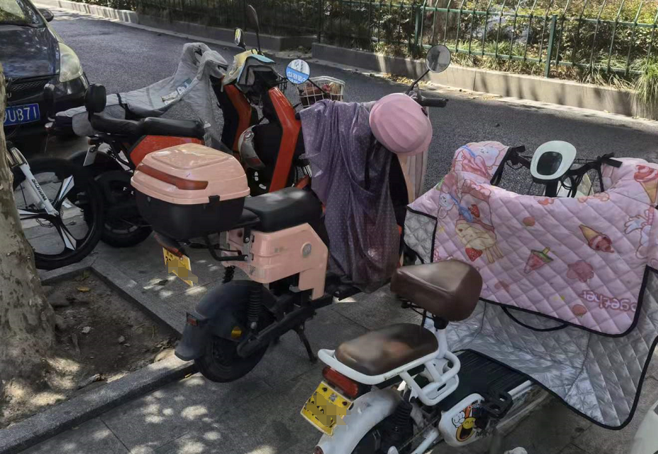 另外,记者看到不少电动车上装了防晒罩,这也是大家经常使用的办法。
