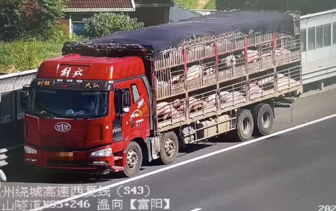 当日15时16分许,杭州高速交警支队四大队指挥中心接到报警称,在杭州绕城西复线高速湖州方向95公里附近,一辆运猪车由于水温过高抛锚在硬路肩上,车上有三十多头生猪。天气炎热,这些猪在太阳的暴晒下已经出现了中暑症状,纷纷倒下,随时可能因高温暴晒缺水致死,情况十分紧急。